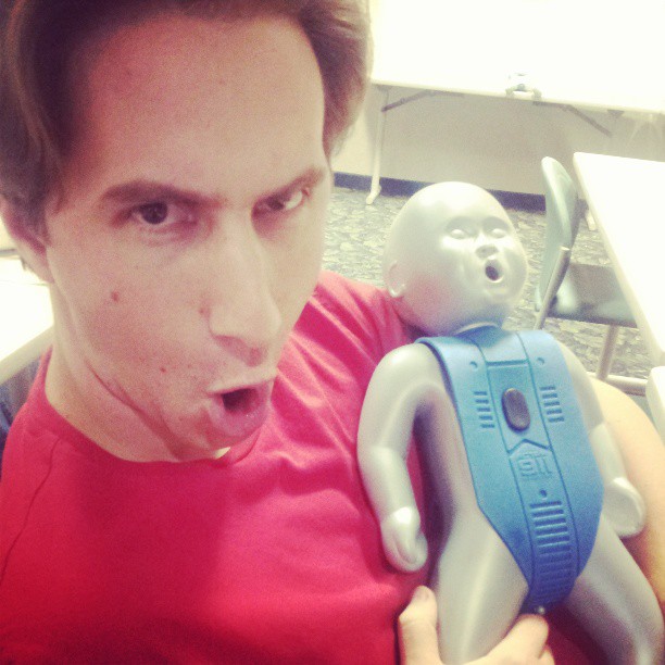 Tivemos aula de Baby Care (Cuidados com bebê) e CPR and Safety (Segurança e Reanimação cardiopulmonar). Ambas abordaram pontos importantes, inclusive algumas coisas que não fazíamos nem idéia mas que, como diz meu marido, poderiam ser facilmente encontradas no google.com . Mas assim treinamos a troca de fralda, aprendemos a cuidar do umbiguinho, a dar banho ( bebês não precisam tomar banho todo dia no início, acredita? 😮 ) e outras coisitas mas.